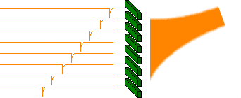 如果我们增加狭缝的数量,用类似的方法也可以计算多缝干涉的条纹分布。可以直观地想象:当狭缝数量越来越多时,干涉图案会逐渐收敛,最终在某个方向上形成一个强度极高的主瓣,周围则伴随着一些强度较低的旁瓣。如下图所示: